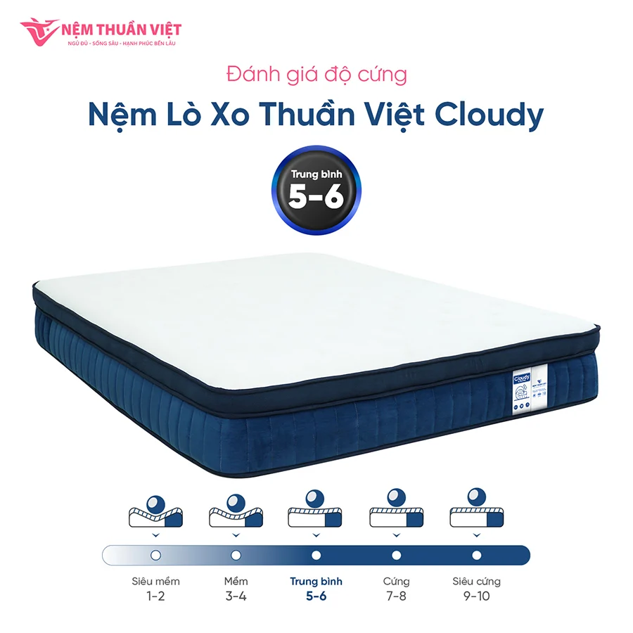 Nệm lò xo Thuần Việt Cloudy – Êm ái, bồng bềnh tựa trên mây